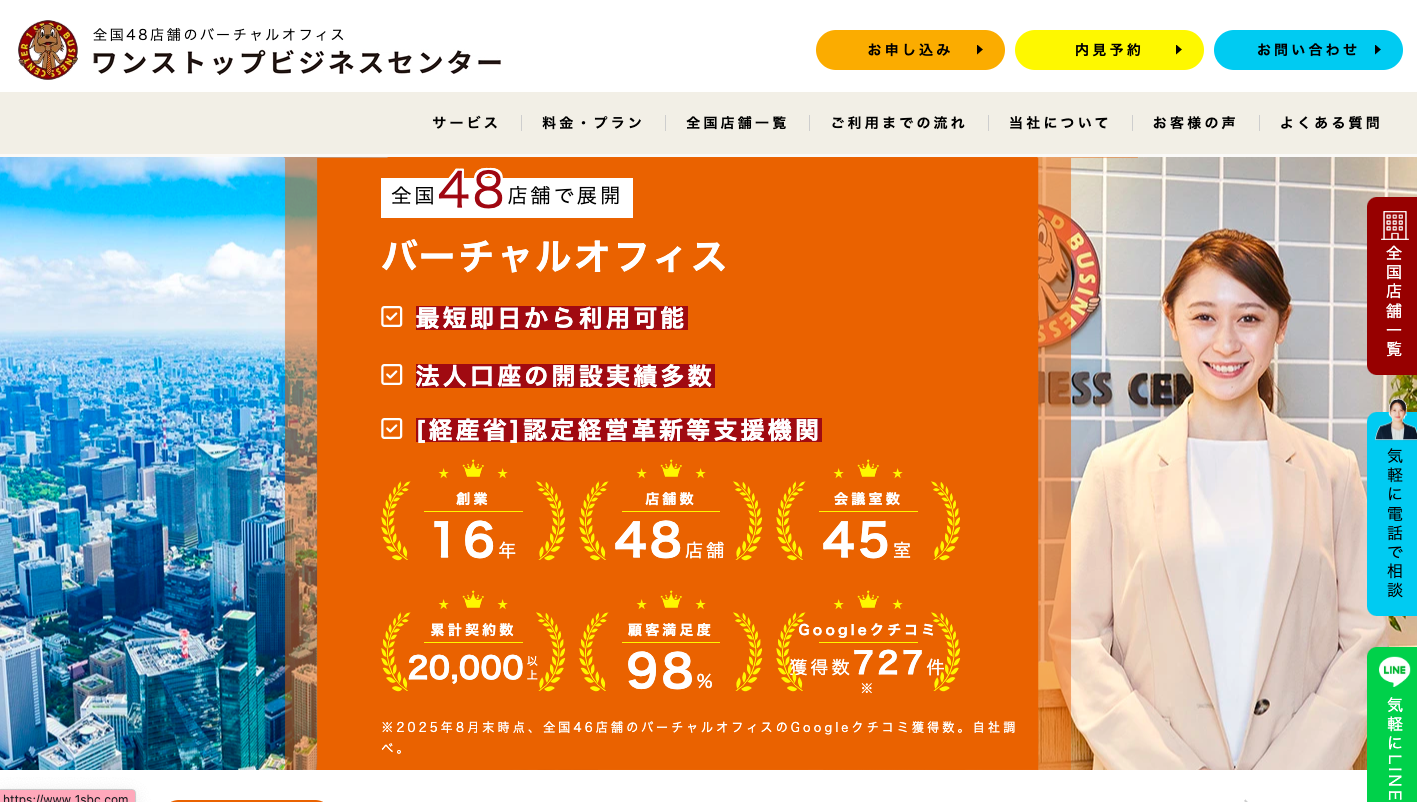 ワンストップビジネスセンターは創業から16年の実績を持ち、全国に48拠点を展開する業界でも有数の規模を誇るバーチャルオフィスです。これまで多くの起業家やフリーランスを支えてきた実績があり、手厚いサポート体制に定評があります。