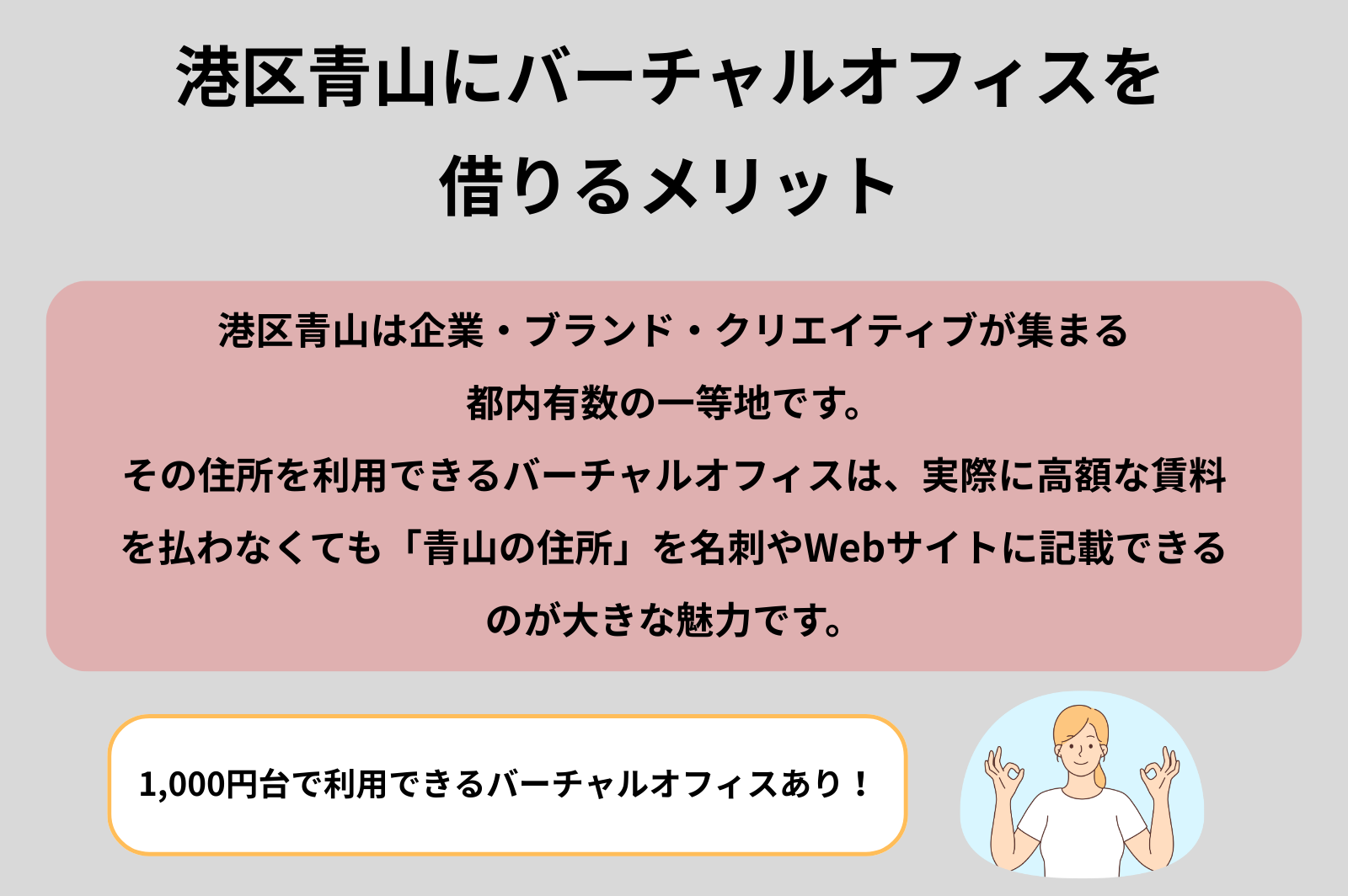 東京の中でも特に注目を集める一等地といえる青山。そのためオフィスを構えるには賃料が高く、ハードルが高いと感じる方もいるかもしれません。しかしバーチャルオフィスを活用すれば、月1,000円以下の低コストで青山の住所をビジネスに活用することが可能です。
